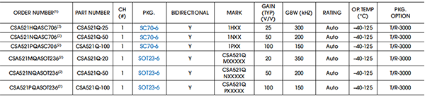 CSA52xQ系列兼容市場主流封裝,包括SC70-6和SOT23-6兩種封裝。