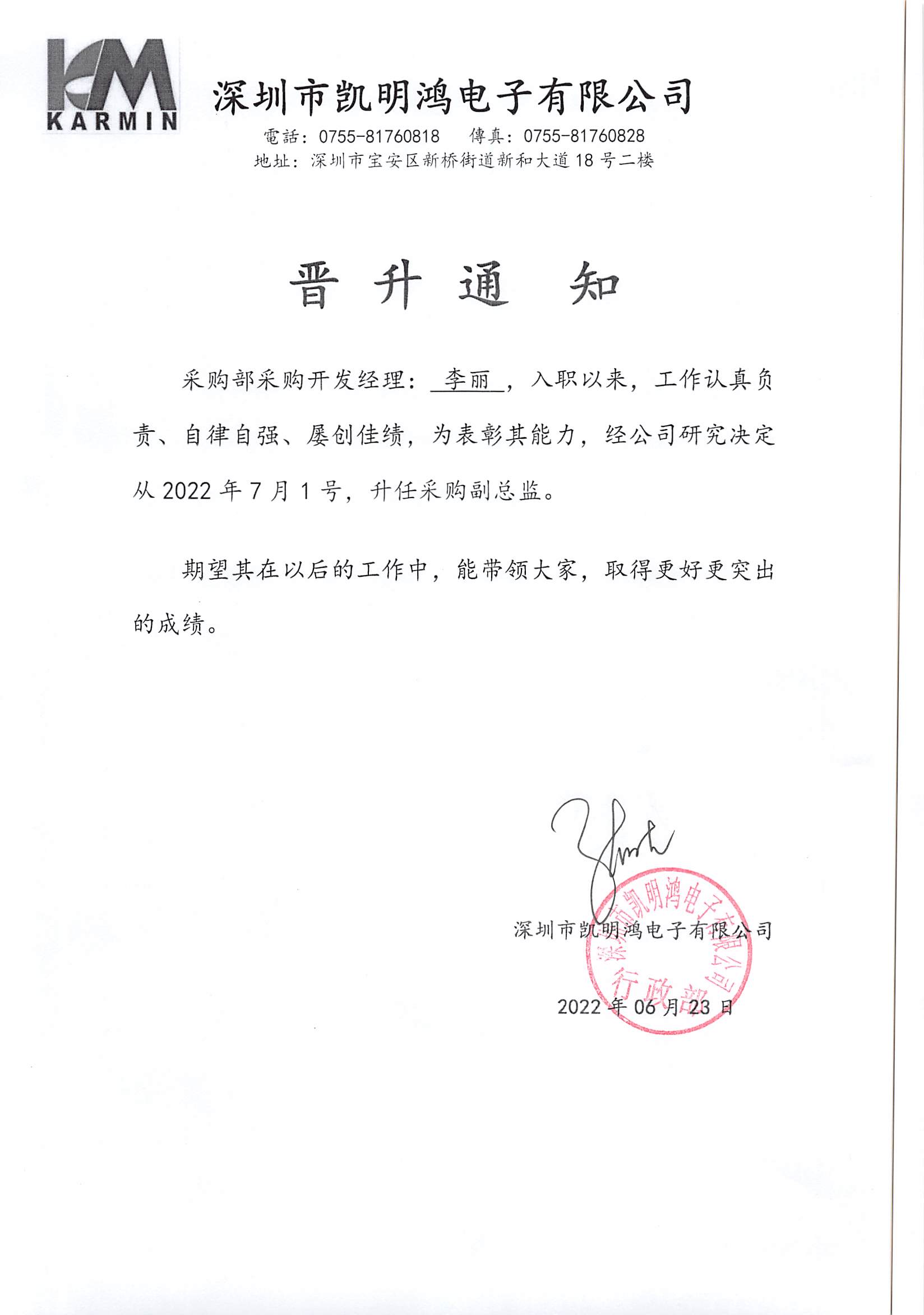祝賀李麗、張菜蓮、劉派兵、林梅君等同事晉升