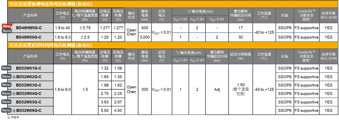 面向該市場需求,羅姆推出了1000多種復(fù)位IC,2021年度,在低電壓范圍的廣泛應(yīng)用領(lǐng)域,創(chuàng)造了2.5億枚的年出貨量記錄。就在近期,羅姆還開發(fā)出了一款高精度、超低功耗且支持40V電壓的窗口型復(fù)位IC “BD48HW0G-C”。
