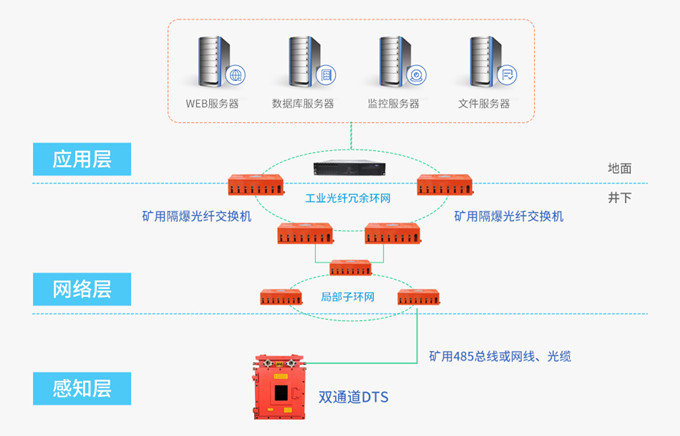 TB系列集線器/中繼器產(chǎn)品可適用于負責(zé)環(huán)境下系統(tǒng)組網(wǎng)設(shè)備間的通信,以煤礦監(jiān)控系統(tǒng)為例,可適用于各層級間的不同信號類型轉(zhuǎn)化。