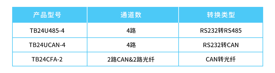 TB系列集線器/中繼器基于不同的總線網(wǎng)絡(luò)應(yīng)用進行開發(fā),可支持多種協(xié)議類型進行應(yīng)用,可支持RS232轉(zhuǎn)RS485(TB24U485-4);RS232轉(zhuǎn)CAN(TB24UCAN-4);CAN轉(zhuǎn)光纖(TB24CFA-2)。